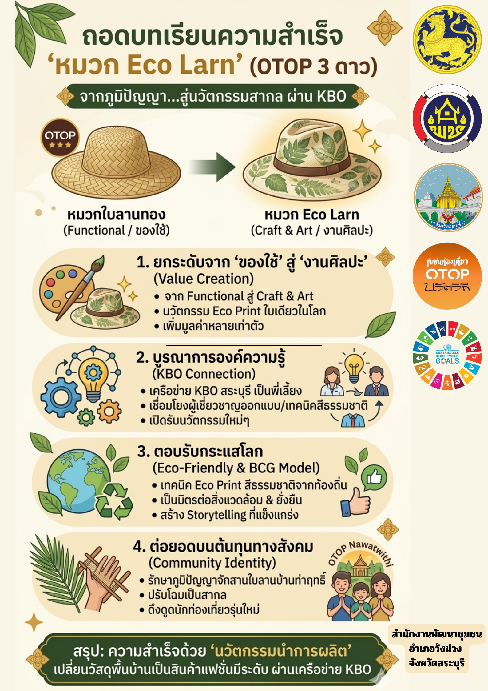 ชวนส่องโมเดลความสำเร็จของกลุ่มจักสานหมวกใบลานบ้านท่าฤทธิ์ จ.สระบุรี ที่ก้าวข้ามขีดจำกัดจากสินค้า OTOP 3 ดาว สู่สินค้านวัตกรรมรักษ์โลกที่ตอบโจทย์ตลาดสากล ผ่าน 4 กุญแจสำคัญ: